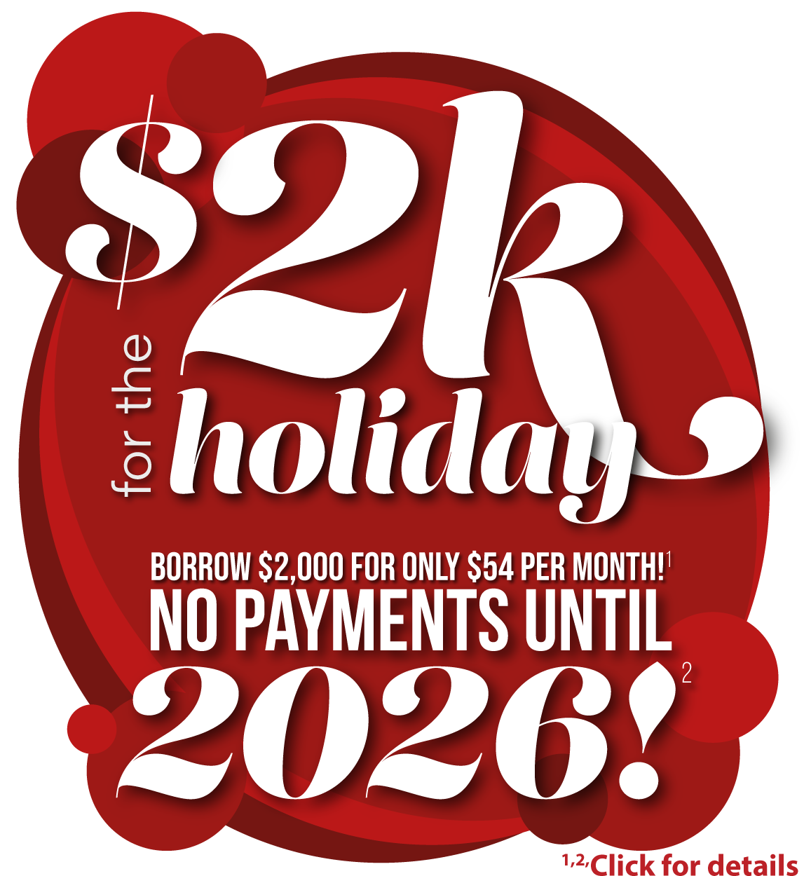 Whether it’s for holiday gift-giving or travel expenses, you can borrow $2,000 for only $54* per month.