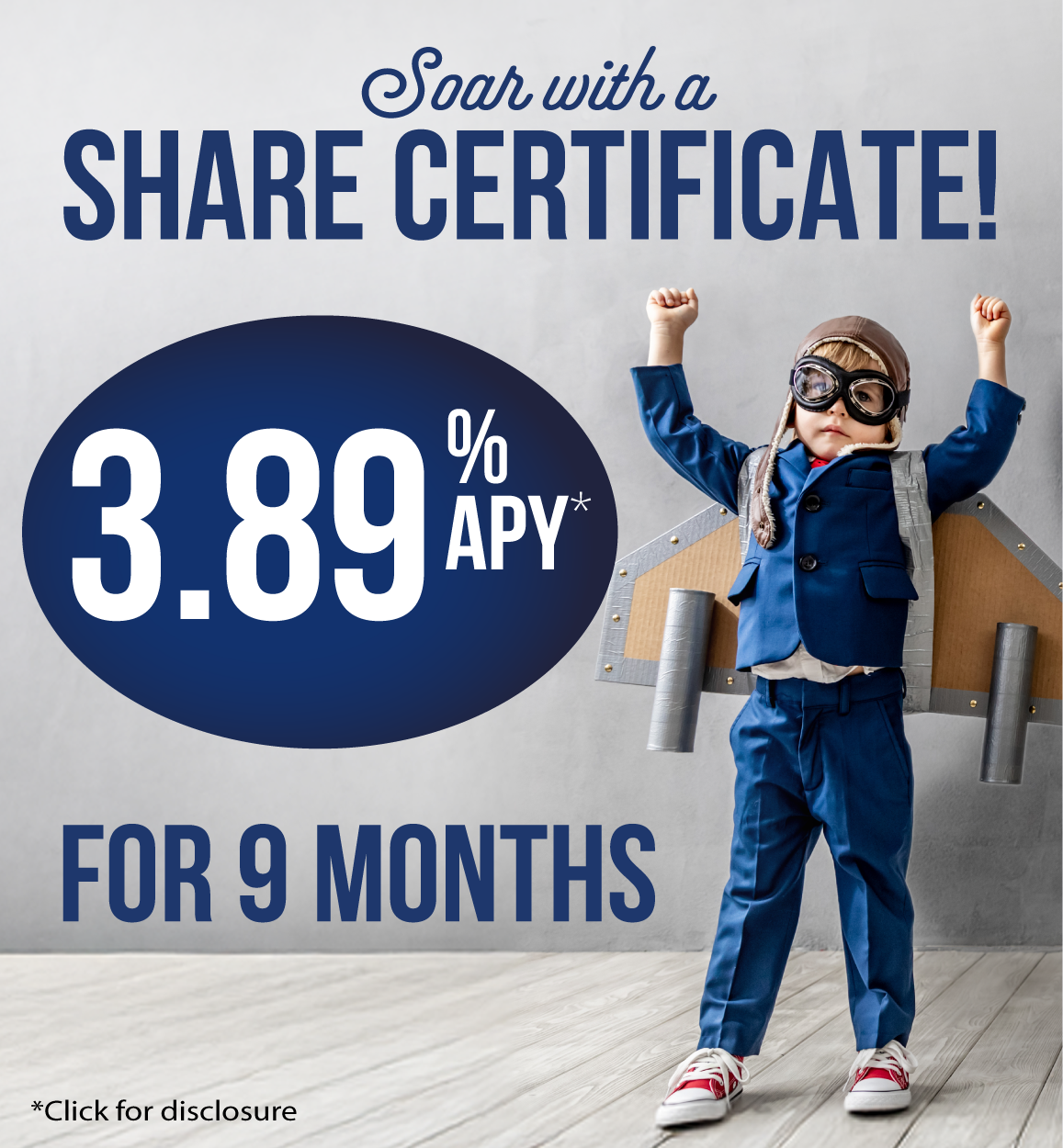 2 Share Certificate Promotion. APY = Annual Percentage Yield. Minimum opening balance to earn APY is $2,000. Penalty for early withdrawal. Personal accounts only. Other rates and terms are available. Rates not available on IRA certificates. Fees could reduce earnings.